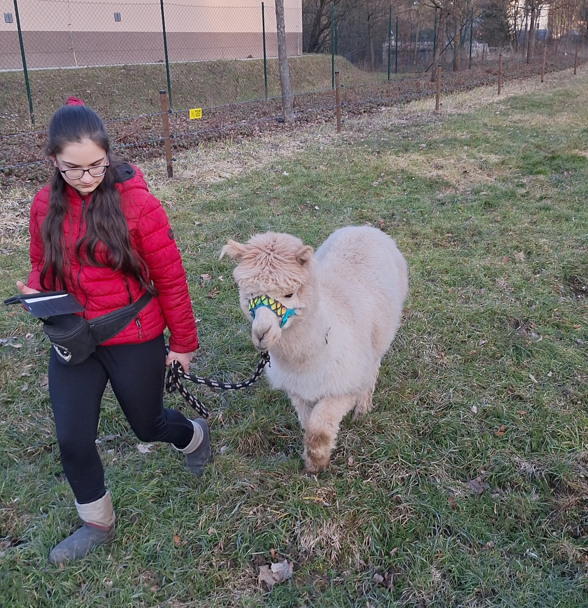 (ZVLÁŠTĚ POKUD VEDOU ALPAKU DĚTI), NASAZUJEME OHLÁVKU A ZA NI VEDEME, ALE