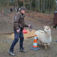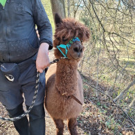 Obojek při manipulaci trénovaných lam a alpak jsem uviděl poprvé na konferenci Animal Behavior Management Alliance v Kalifornii v roce 2012, kde byl prezentován jako normální legitimní pomůcka pro vodění NAVYKLÝCH A TRÉNOVANÝCH zvířat v rámci veřejných programů. Někde se dokonce alpaky vodí i na celotělovém postroji. Chci ale upozornit, že OBOJKY ROZHODNĚ NEDOPORUČUJI JAKO JEDNODUŠŠÍ VERZI PRO VYCHÁZKU S ALPAKOU DO CIZÍHO PROSTŘEDÍ A PŘEDEVŠÍM NE PRO ALPAKU, KTERÁ SI NEPROŠLA POSTUPNÝM TRÉNINKEM, jako naši samci. Nám jsou ale u našich trénovaných samců praktickou pomůckou na zázemí a hlavně na kozolamokempech z důvodů, které uvádím níže.