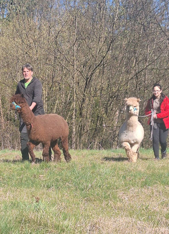 Pokud jde o věk samců alpak, hnědě zbarvený Bebe se narodil v roce 2018, zatímco věk bíle zbarveného Žužu je nejistý. Podle zubů a dalších známek stáří byl však už před lety při kontrole konstatován datum narození někdy kolem roku 2010, takže je to starší pán a podle toho spolu fungujeme.